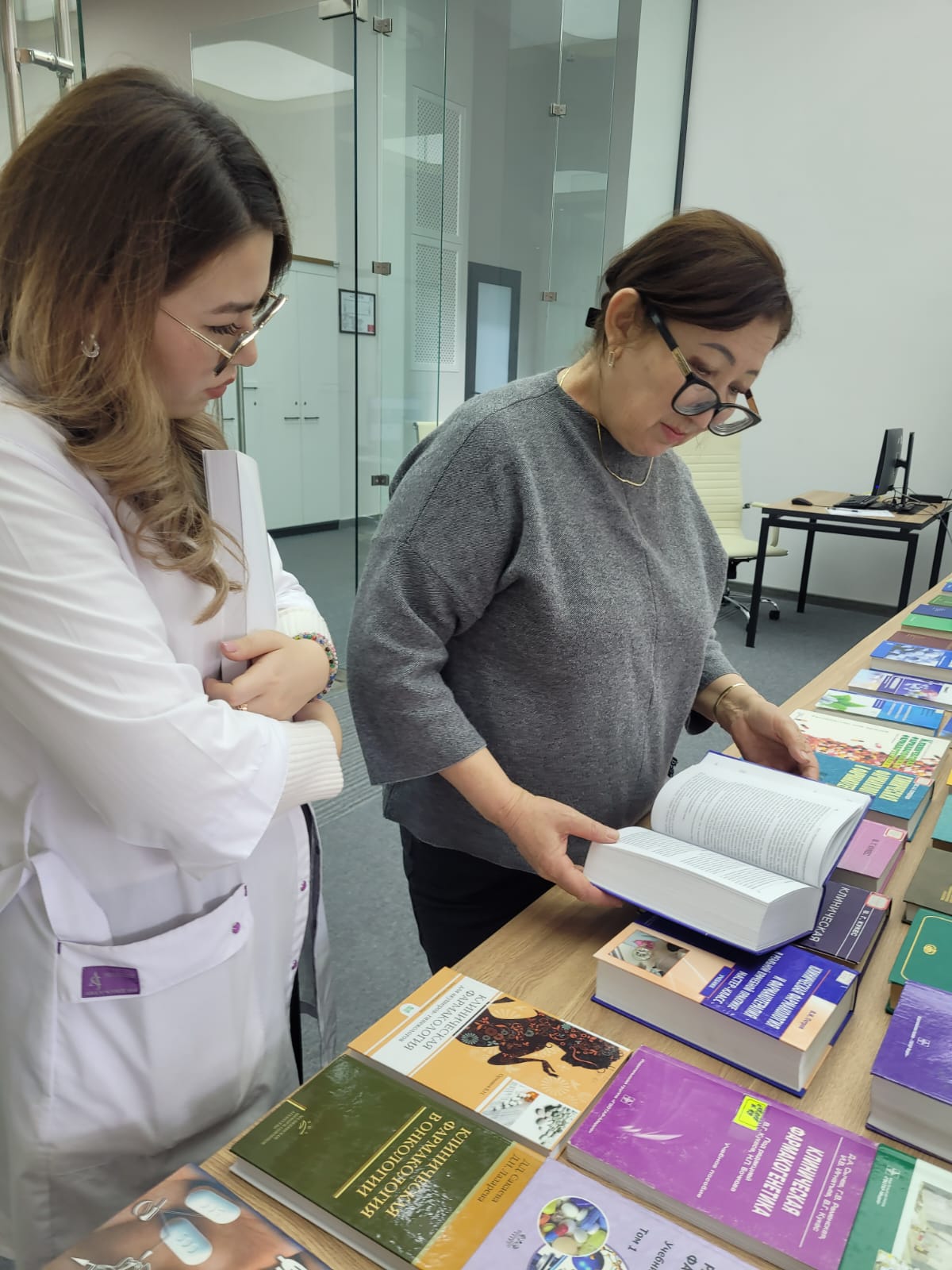 С 4-6 ноября 2025 года в читальном зале библиотеки было организовано и проведено мероприятие — День кафедры «Кафедра фармакологии, фармакотерапии и клинической фармакологии», экспонировано книжная выставка по профилю кафедры — учебников, учебных пособий, монографий, атласы на казахском, русском и английском языках.